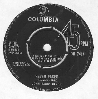 THE JOHN BARRY SEVEN-Twenty Four Hours Ago/Seven Faces U.K. Columbia DB 7414 1964